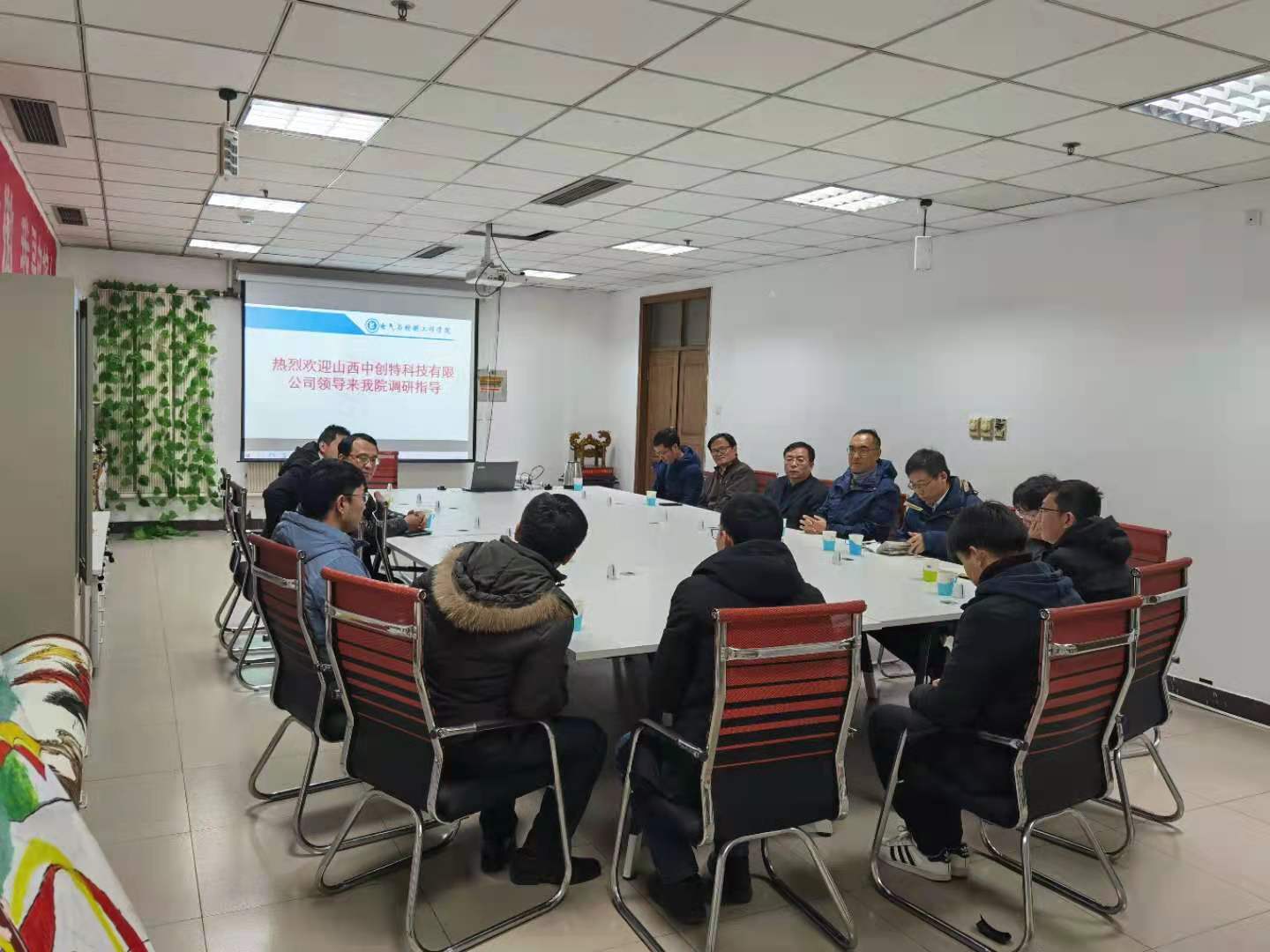 2020年12月17日上午,山西中创特科技有限公司领导李波总经理一行2人来黄色电影调研交流。黄色电影 科研院长任一峰教授、教黄色电影 长李晓教授和黄色电影 部分专业教师在黄色电影 会议室与来访人员就科研合作方面进行了交流。