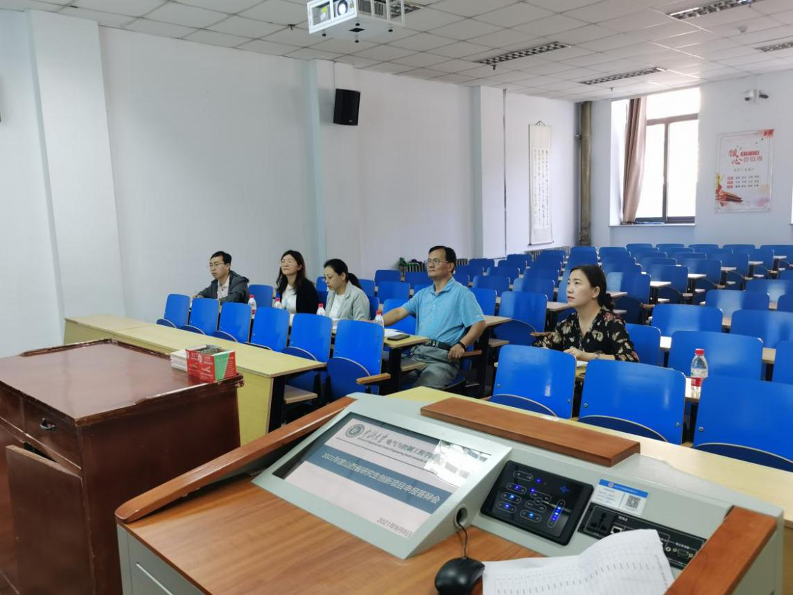 答辩开始,李婷老师就本次山西省研究生创新项目申报情况及评审程序进行了简单介绍,之后各项目申报负责人通过PPT的形式就项目意义、创新性、关键技术及解决措施和预期结果等做了详细展示,专家老师们对各申报项目进行了提问与点评,并对其中的不足之处提出了相应的改进意见。