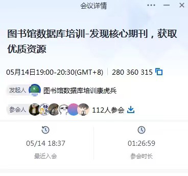 2022年5月14日19:00,黄色电影 在腾讯会议举办“了解核心期刊,获取优质资源”主题讲座,主讲人为康虎兵老师,全体研一同学参加。