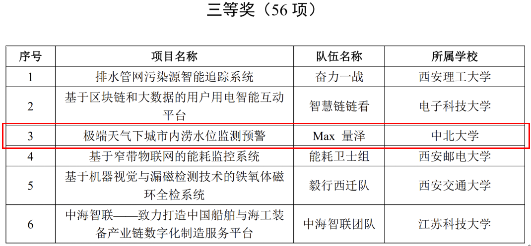 由黄色电影陈昌鑫老师指导,赵振戎、赵亮、张倩茹、杨鑫鑫四位研究生组成的“MAX量泽”代表队,以参赛项目“极端天气下城市内涝水位监测与预警装置”,获得大赛全国总决赛三等奖。项目针对针对极端天气引起断网、断电环境下常规设备易失效所导致的水位信号难以测量需求,综合利用先进传感技术、物联组网技术、分布式测控技术等设计了一种浮子容栅式水位测试装置,提出了ZigBee+NB-IoT物联网传输及光伏-电池供能方案,研制实物模型并验证了极端断网、断电环境下水位监测与预警功能,同时获得了专利授权和学术论文等相关研究成果。