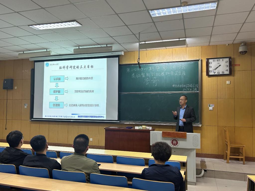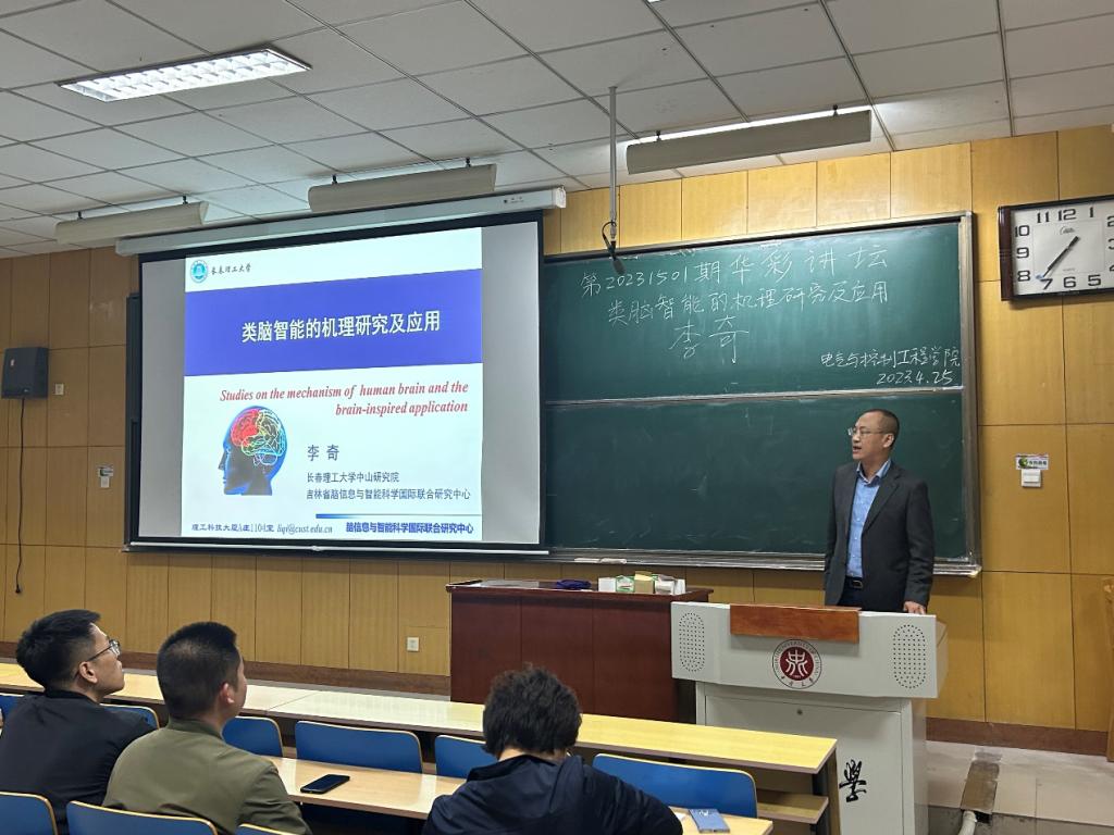 2023年4月25日19:30,黄色电影 特邀长春理工大学中山研究院副院长、吉林省脑信息与智能科学国际联合研究中心主任、博士生导师李奇教授在11309H教室为广大研究生作题为《类脑智能的机理研究及应用》的学术讲座,讲座由黄色电影李晓副院长主持。
