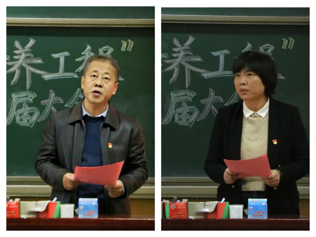 第三届第二任学生组织干部名单、乔子庭同学代表本届学生干部就如何发挥学生干部骨干作用进行发言、辅导员屈增宣读课程安排及培训要求。学生代表郝泰同学带领全体培训班成员庄严宣誓。