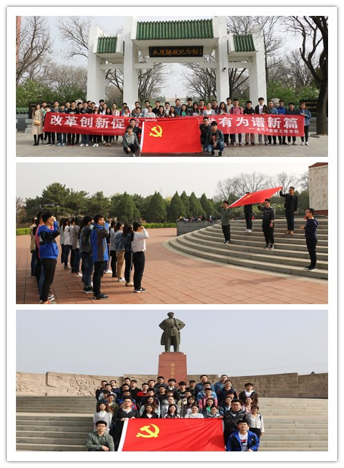 学生党员在辅导员柴峰华、任建红、康艳超老师的带领下,赴全国爱国主义教育基地——牛驼寨烈士陵园举行“改革创新促发展,奋发有为谱新篇”的主题党日活动,深切悼念那些为共产主义事业,为了人民的解放和幸福,不惜抛头颅、洒热血,英勇献身的英雄们。