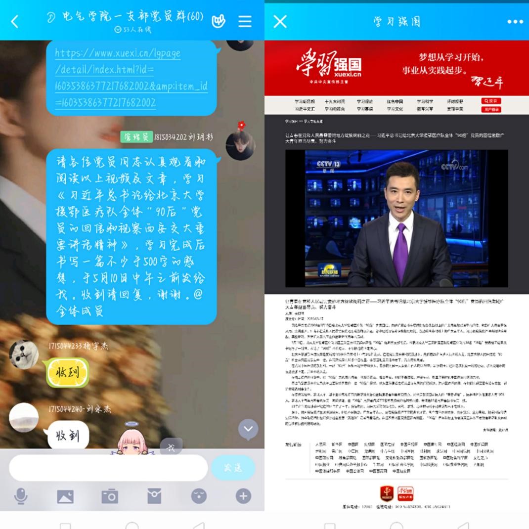本科生第一党支部组织学习了“习近平总书记给北京大学援鄂医疗队全体‘90后’党员的回信和视察西安交大重要讲话精神”。通过线上观看视频以及阅读文章等方式学习,要求每位党员同志学习完成后书写相关心得体会。