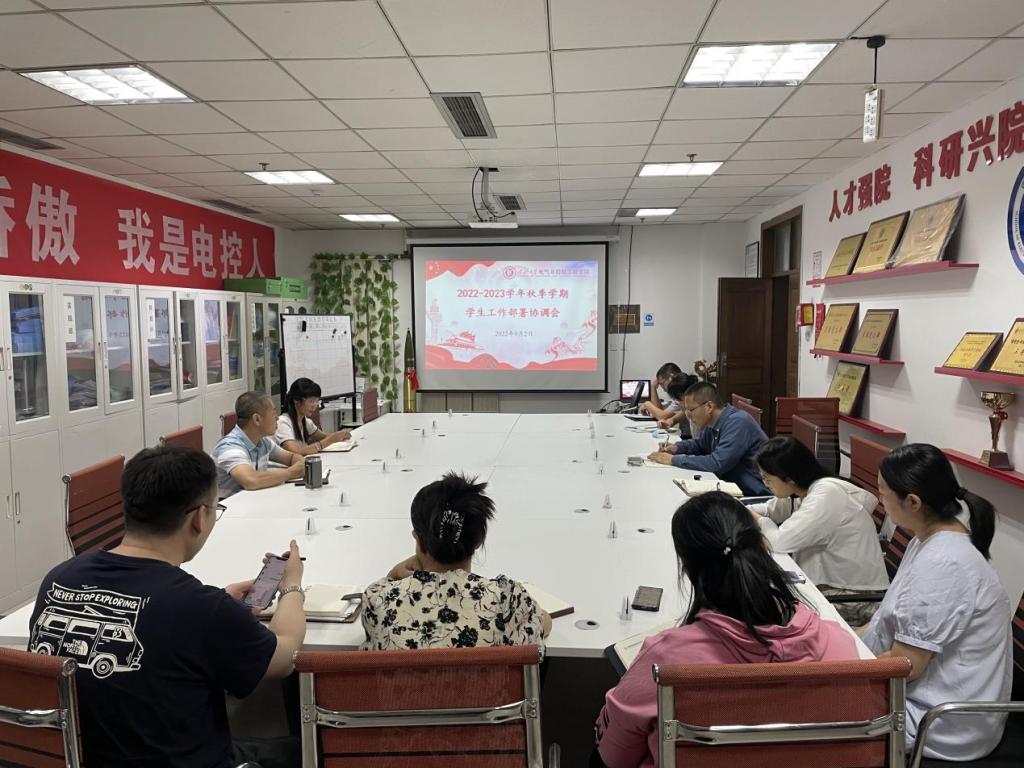 在主楼619召开新学期学生工作部署会议,院党委书记赵正杰,院党委副书记、副院长杜苇出席会议,全体辅导员参加,会议由院党委副书记、副院长杜苇主持。