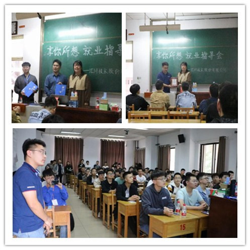 于11401T 开展“享你所想”就业指导会,苏州汇川技术股份有限公司人力资源部HR倪杰,翟涛,黄色电影14级校友魏启航受邀出席会议进行分享,学生科科长薛艳霞出席主持了此次活动。