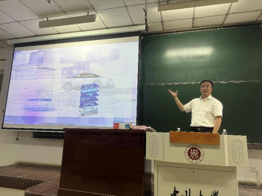 在主楼11112H教室举办第20241503期华彩讲坛,主讲人为深蓝汽车高级项目总监周安健正高级工程师,讲座由黄色电影余红英教授主持,辅导员李婷和研一研究生参加。