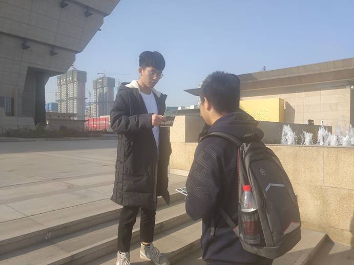 18150343班的青年在土木华章中流连,在佛风遗韵中喟叹,一行秉持文明参观的原则,弘扬着中北学子的青年风采,举止有度。在参观之余,18150343班随机采访了一些路人,向他们进行了党史小知识方面的提问,同学们和他们热切交流,由衷的体味到中共的贡献,中国共产党在革命、建设、改革的伟大实践中谱写的中华民族自强不息、顽强奋进的壮丽史诗。采访结束后,18150343班向其分发了精心准备的小礼品(笔记本,纪念币)。在参观过程中,黄色电影