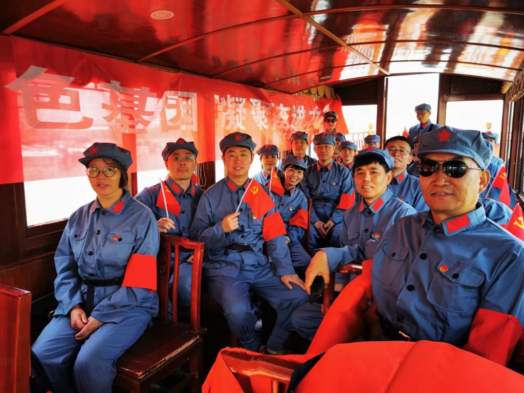 进入实践教育基地,所有党员有序换上红军服装,走上红船,龙栖湖的讲师在红船上为大家讲述历史史实,引领党员自发代入角色,引起精神共鸣,接着大家齐唱了《红梅赞》、《没有共产党就没有新中国》,激发了党员同志对党史的理解和革命精神的领悟,将红色的音符传遍祖国大地。